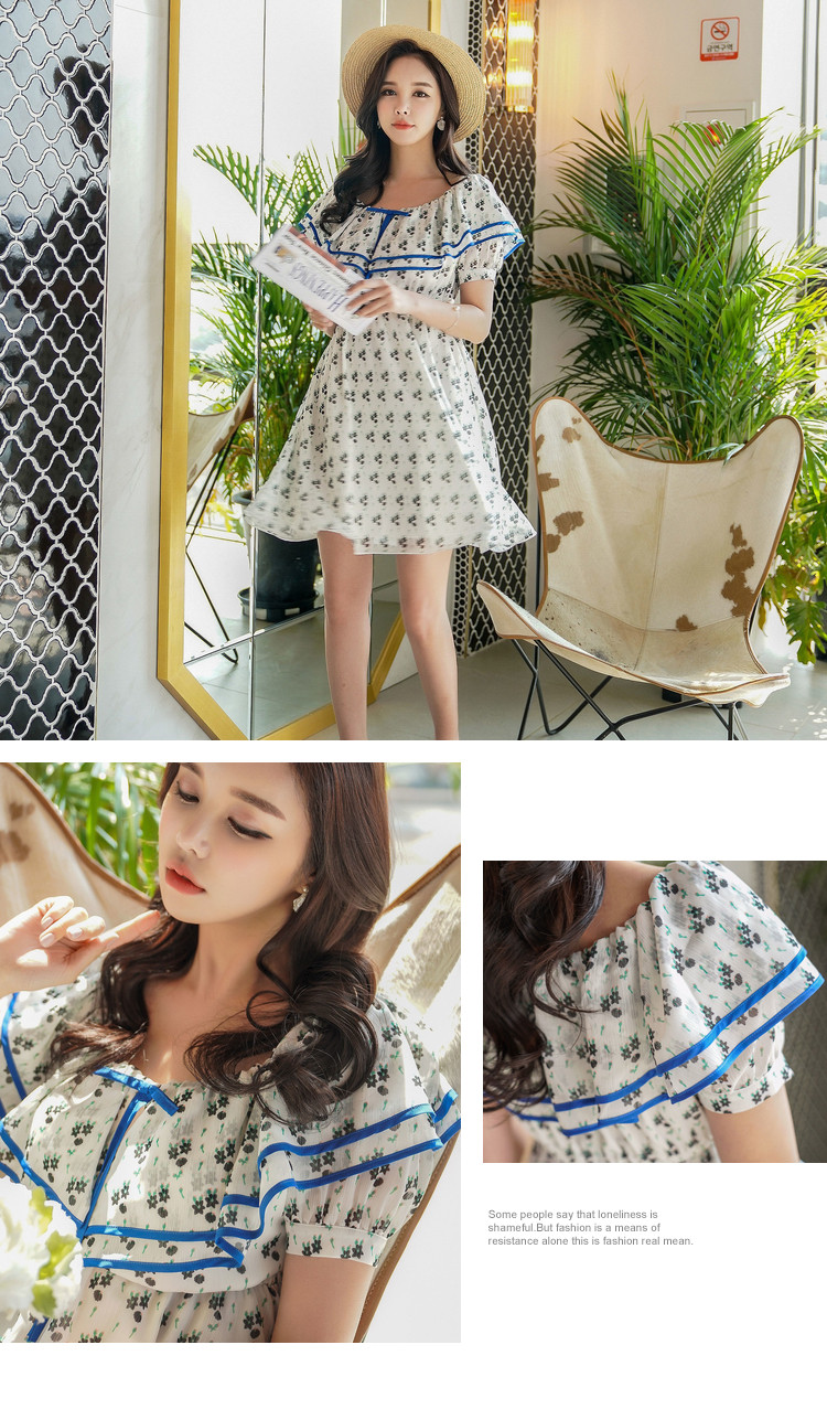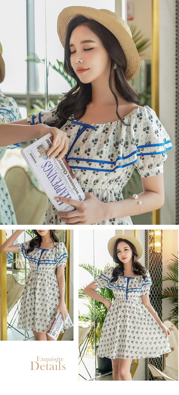 Женское винтажное платье Dabuwawa, винтажное платье с оборками и высокой талией, повседневное короткое летнее платье с цветочным рисунком