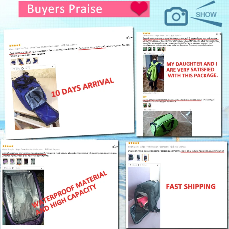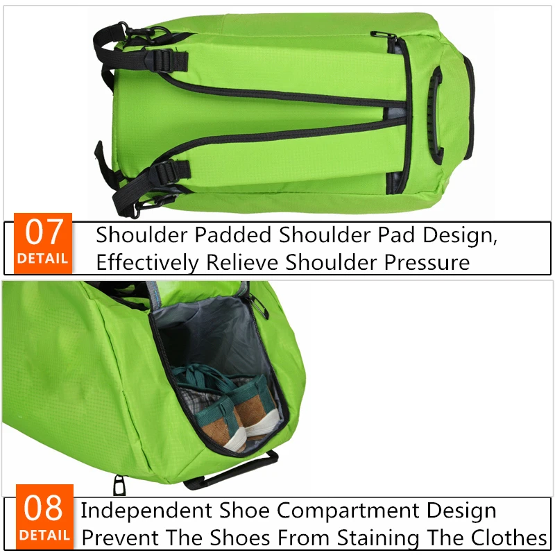 5. Варианты переноски-через плечо, за спиной или двумя ручками сумки. Вы можете использовать его как спортивную сумку, сумку для переноски, дорожную сумку и ежедневную сумку, идеально подходит для тренировок, аттракционов, спортзала, йоги, пляжа, бассейна, кемпинга, рабочие дни или выходные поездки.