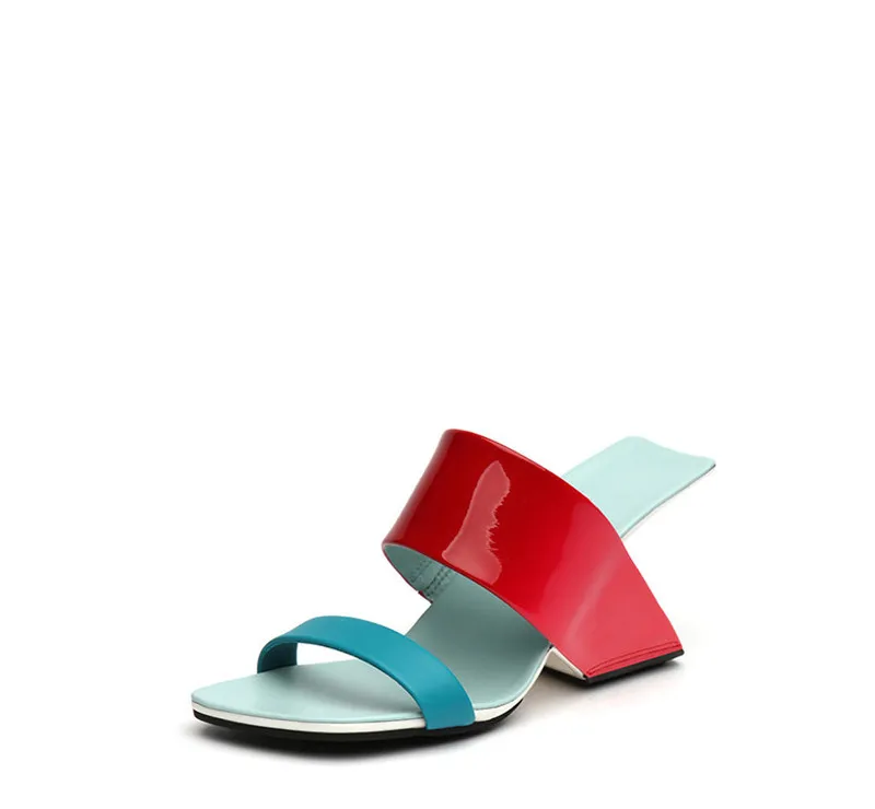 Женские босоножки с острым носком летние туфли из воловьей кожи на низком