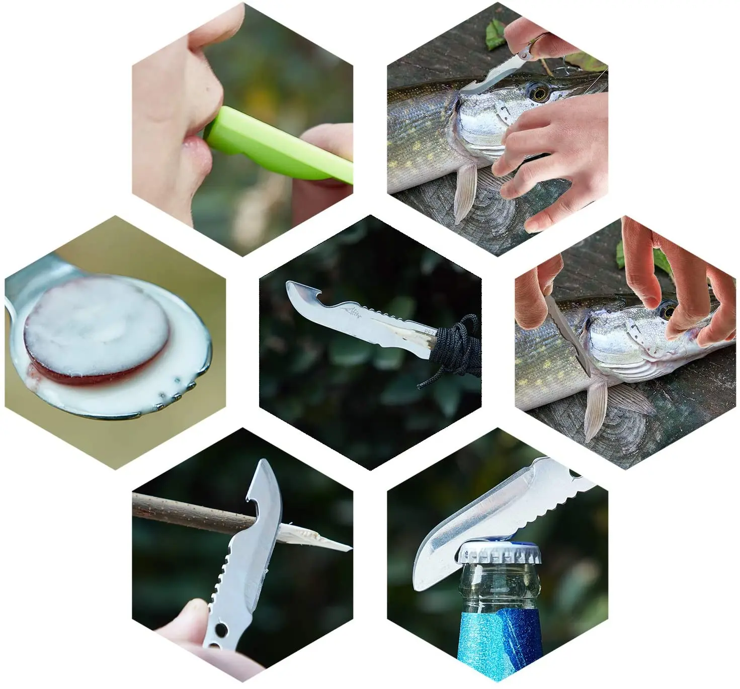 Легко носить с собой: Разработан с некоторыми отверстиями на спорке и оснащен веревкой, удобно для вас, чтобы повесить спор на шею, брелок или рюкзак, чтобы сделать место для ваших рук, таким образом, вы можете сделать что-то еще, легко носить с собой и чистить, не будет нести дополнительную нагрузку на вас. Различные случаи: Пластиковый рукав может быть защитным рукавом или свистком для вас, чтобы позвонить своему партнеру, в то время как вам нужна помощь, продуманный и практичный набор инструментов для походов, кемпинга, альпинизма, охоты, рыбалки, барбекю, путешествия и любые мероприятия на свежем воздухе. Спецификация: Материал: нержавеющая сталь, пластик Спортивная: прибл. 15,7x3,7 см/6,2x1,46 дюйм (ов)