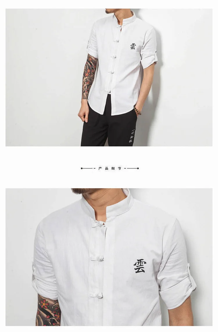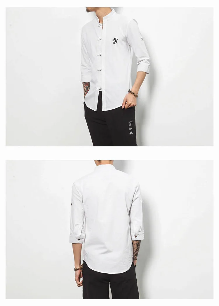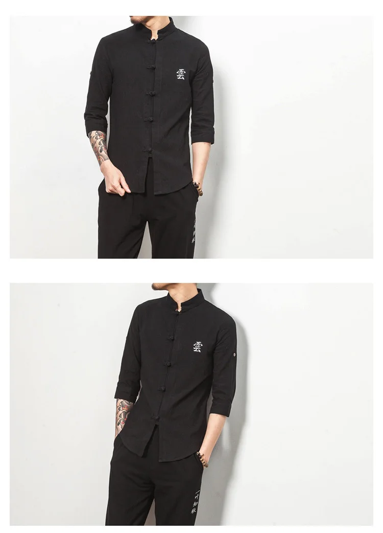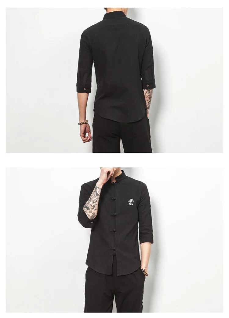 #4713 сезон: весна лето из хлопка и льна Рубашка мужская черная/белый китайский