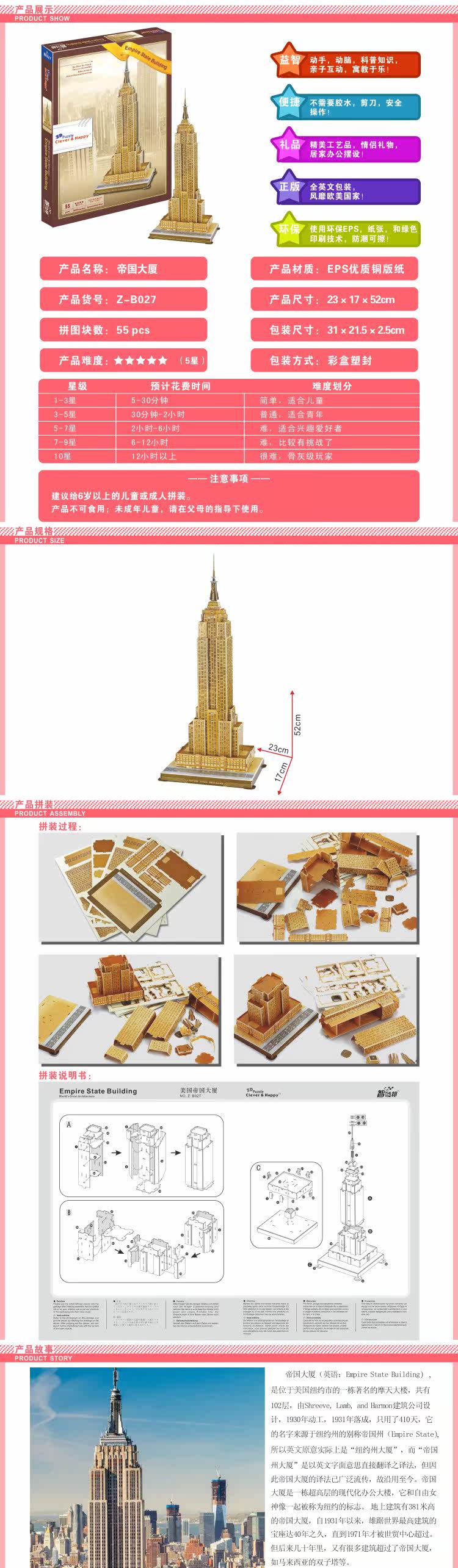 3D головоломка умный и счастливый Бумажная модель для сборки Сделай Сам игрушка Нью-Йорк Эмпайр Стейт builing подарок на день рождения Рождество 1 шт