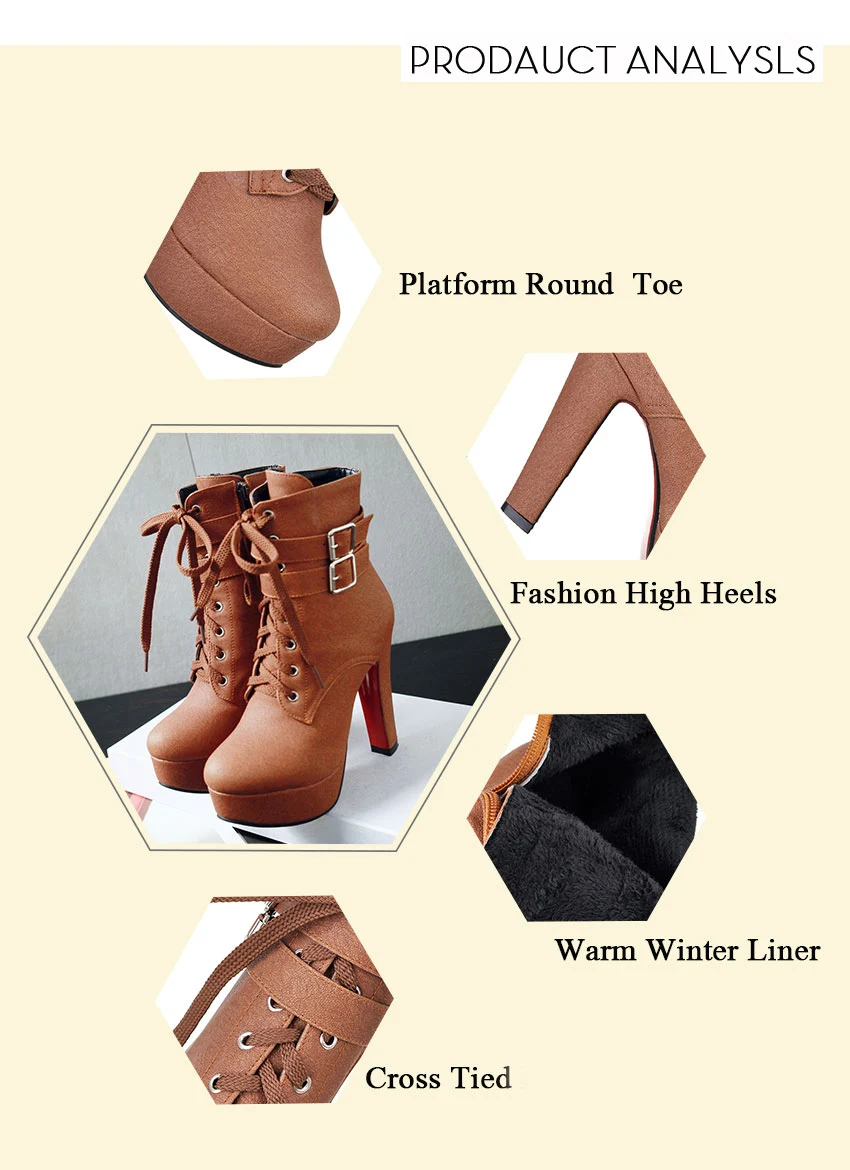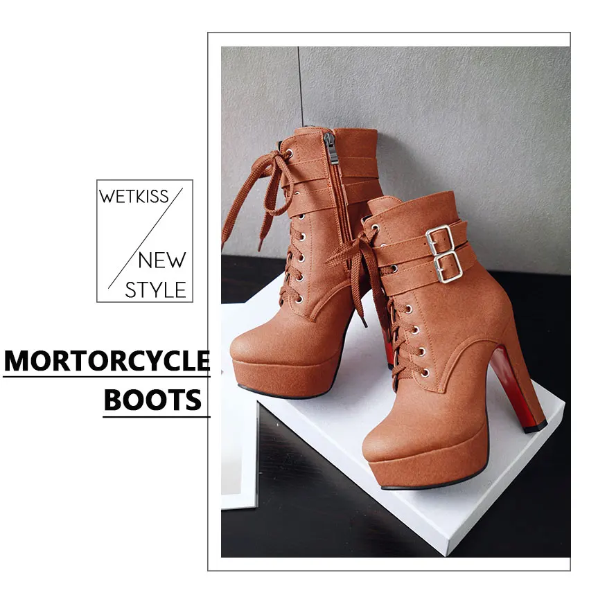 WETKISS/очень большие размеры 32-48, обувь на толстом высоком каблуке, короткие ботинки на шнуровке с пряжкой, женские ботинки на платформе, осенне-зимние ботинки