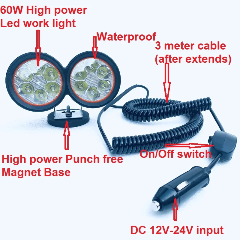 1pc 72W Led work light fog lamp with magnetic base==========================================================================