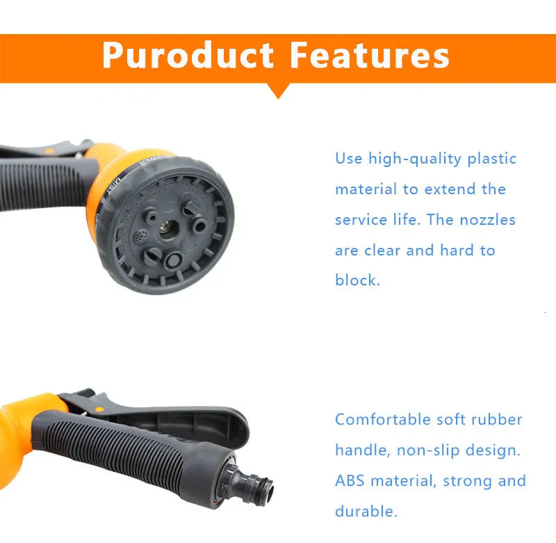 Этот товар имеет большую удобную ручную ручку, чтобы вместить рабочие перчатки, и он портативный для переноски, гибкий для перемещения и прост в эксплуатации. Он широко используется в очистке автомобиля, палубы, крыльца, патио, дома, садового шланга, подъездной дорожки, тротуара, двора бассейна. Отлично подходит для отелей, ресторанов, фабрик, дома и другого использования.