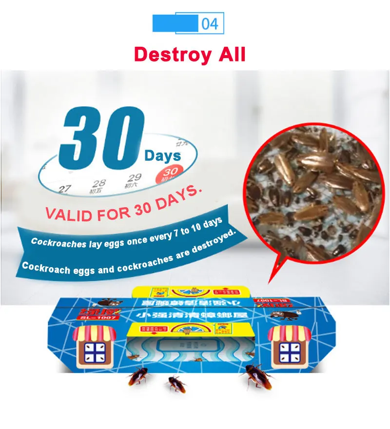 Использует ароматическую приманку, чтобы заманить тараканов внутрь, где они находятся в ловушке На липком Клее, не будет прямого уничтожения тараканов.