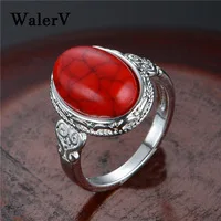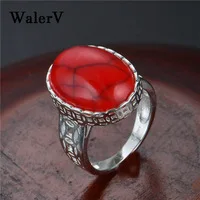 WalerV Новые Натуральные для мужчин и женщин мужские овальные красные Ретро голубой бирюзовый камень кольца персонализированные ювелирные изделия годовщина лучший подарок на палец