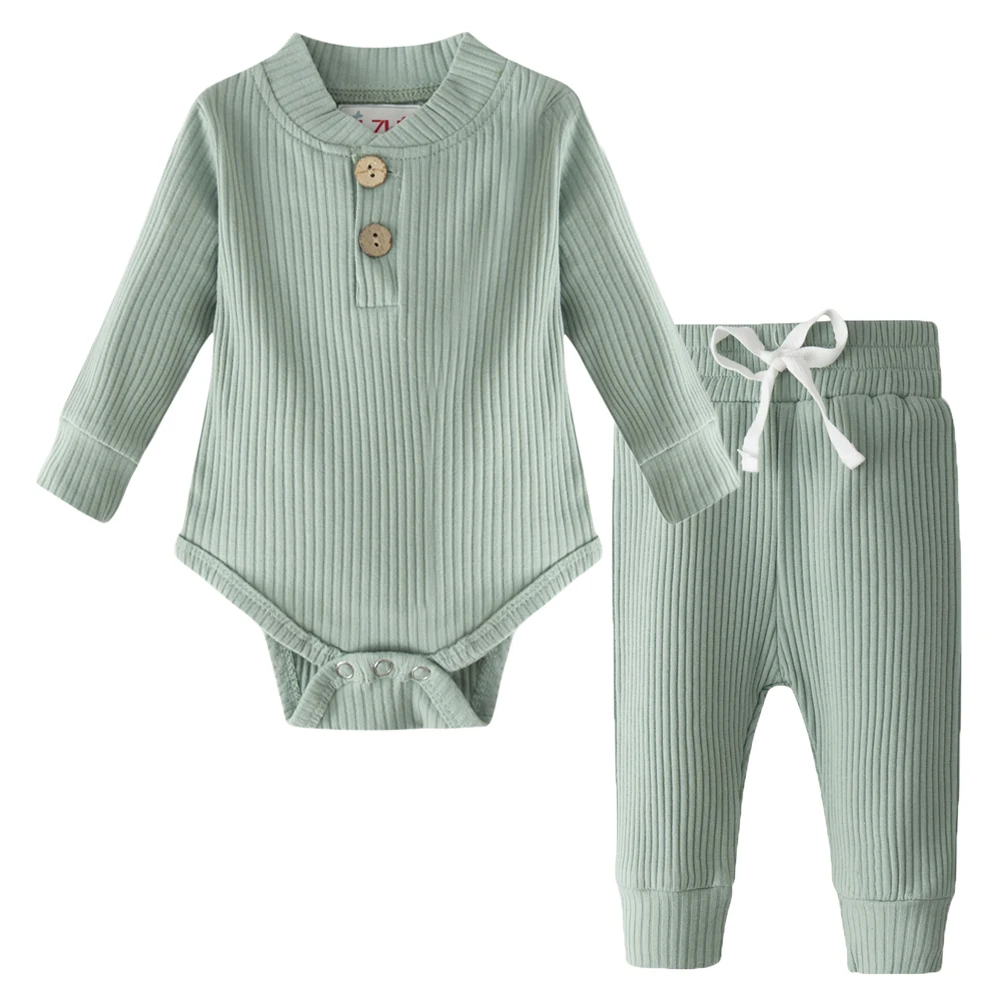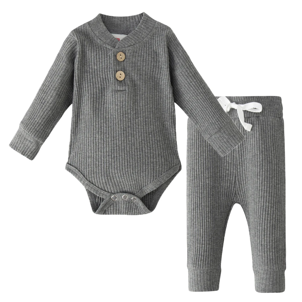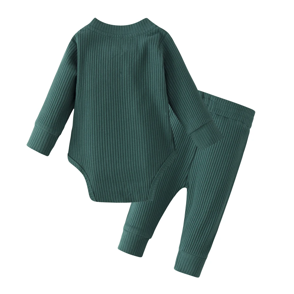 Newborn Baby Boy Girl Clothes Bodysuit Romper Tops + Pants Fall 2PCS Long Sleeve Solid Outfit