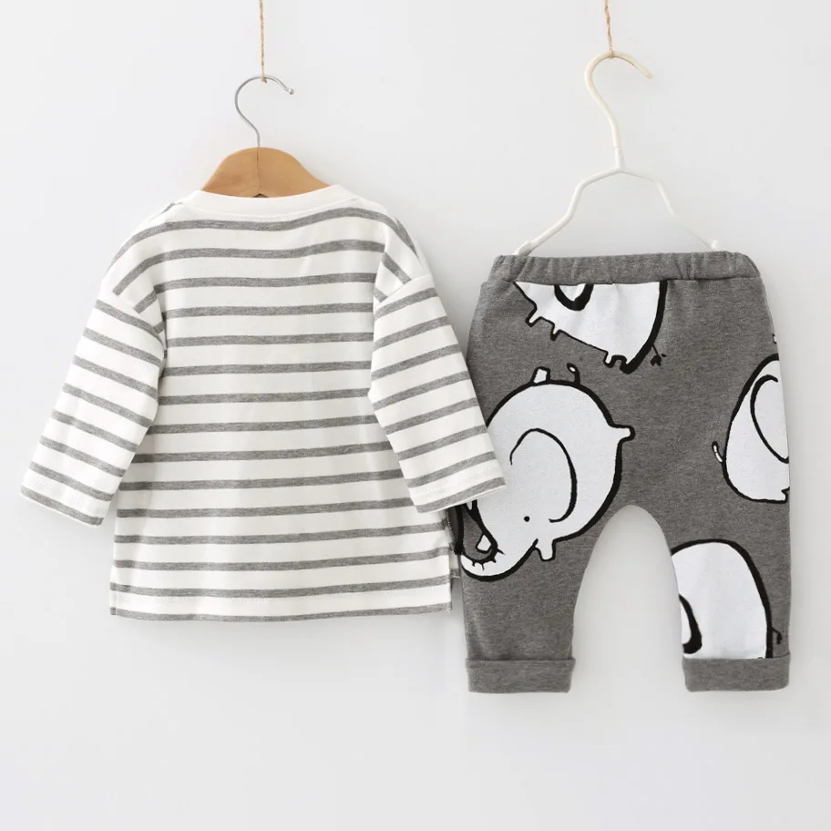 ❤ Design: Elephant pattern striped print baby boys girls long sleeve shirt and striped pants clothing set,ctue and stylish ,make your baby super adorable.