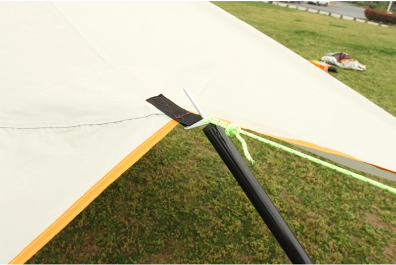 Посылка включает в себя: 1 Солнцезащитная ткань, пару полюсов, 8 гвоздей и 8 канатов, 1 мешок для хранения.