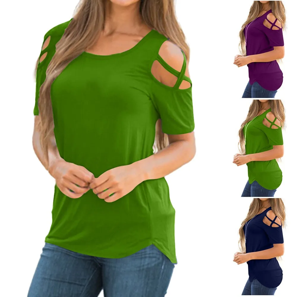 . Летняя женская футболка с короткими рукавами и открытыми плечами