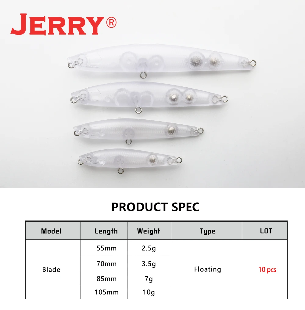 Jerry 10 шт. пустая приманка для рыбалки 55 мм/70 мм/85 мм/105 мм неокрашенные приманки из твердого пластика плавающая Сверхлегкая приманка-карандаш