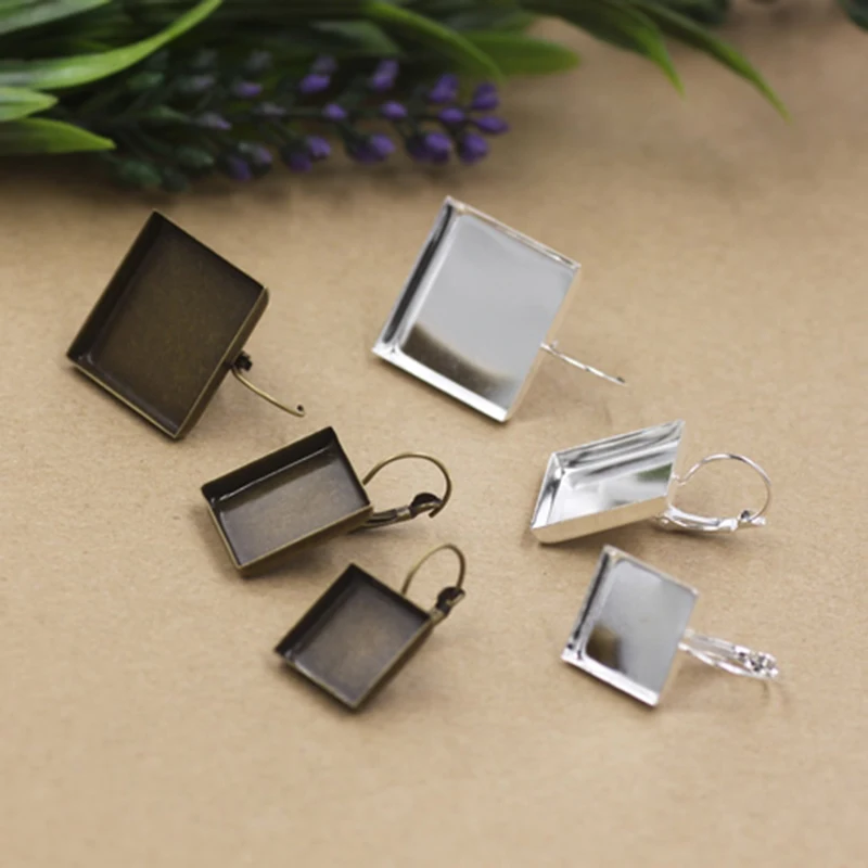 12 мм 10 шт посеребренные квадратные стильные французские серьги с рычагом, пустые/Базовые серьги для самостоятельного поиска, подходят 12 мм стеклянные кабошоны (05930)