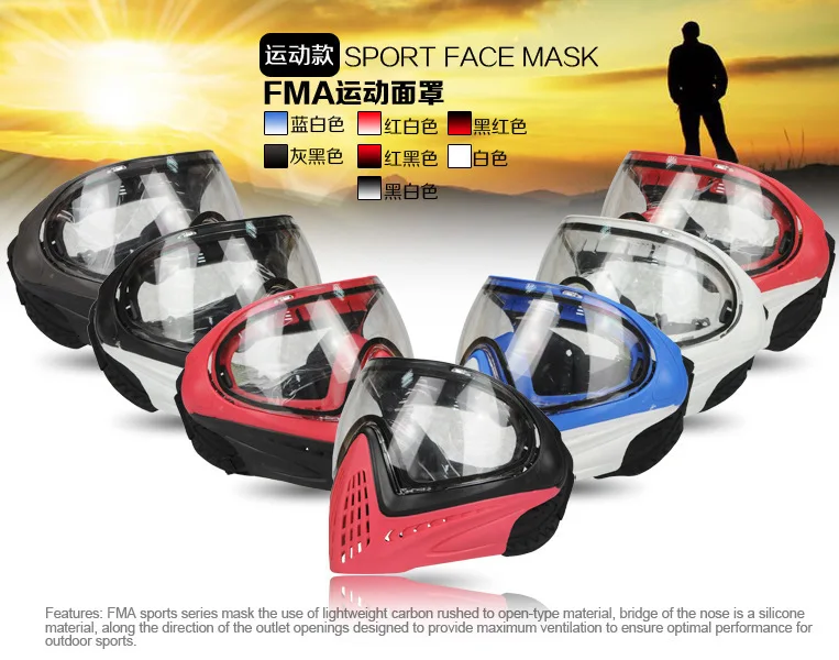 Характеристики: маска серии FMA motion использует легкий новый тип углерода нанесение перфорации на материале, луч носа является силикагелевым материалом, и направление засорения является открывающейся конструкцией, обеспечивает максимальное изменение воздуха и обеспечивает наилучшие показатели спорта на открытом воздухе.