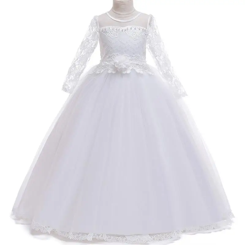 Продукты | Длинные белые кружевные вечерние бальные Платья с цветочным рисунком для девочек от 3 до 15 лет Детское свадебное платье принцессы для девочек, платье для первого причастия |