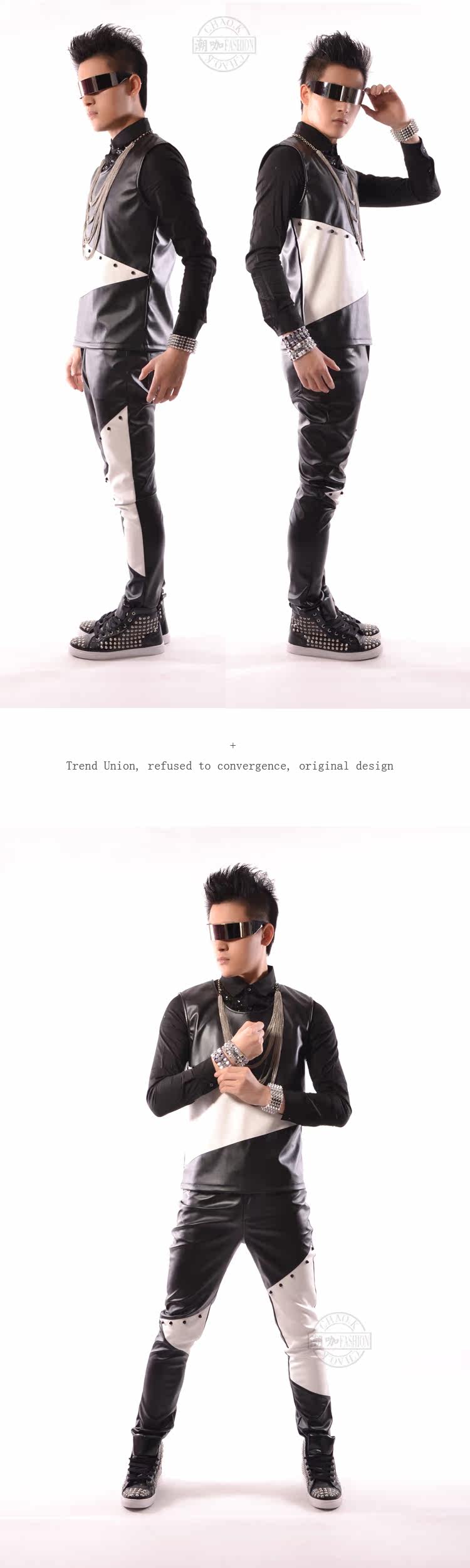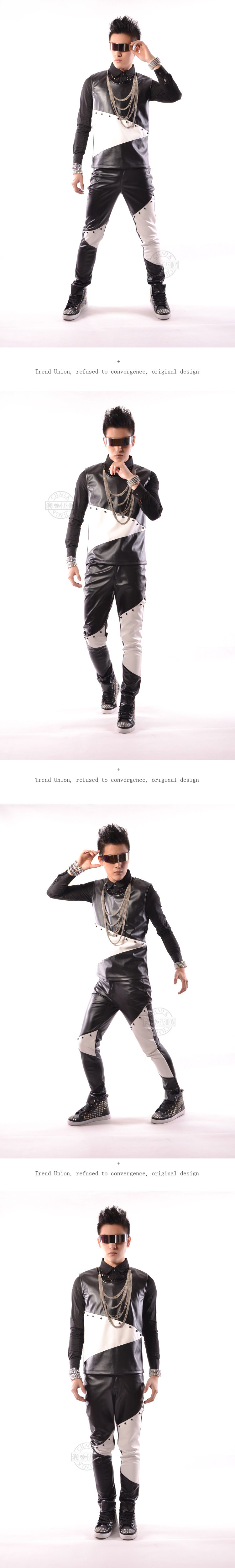 Модная мужская черно-белая модель искусственная кожа жилет сценический наряд