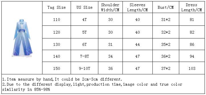 1.Because of different measurement methods, Pls allow 2-3 cm error. 2.The color of the cloth may be different with the original primary for light effection. |