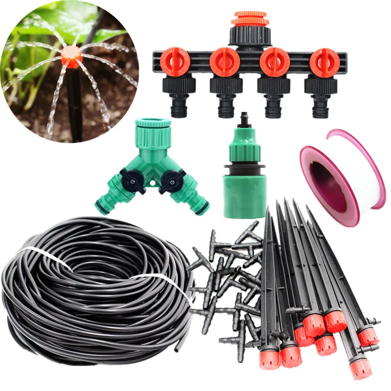 5-50 м 2-Outlet 4-Ways дистрибьютор праздничный набор для полива Регулируемый 8-Holes капельница на коле горшечные растительные наборы для полива