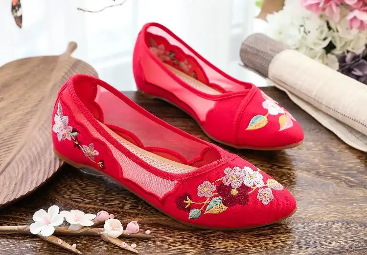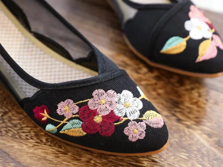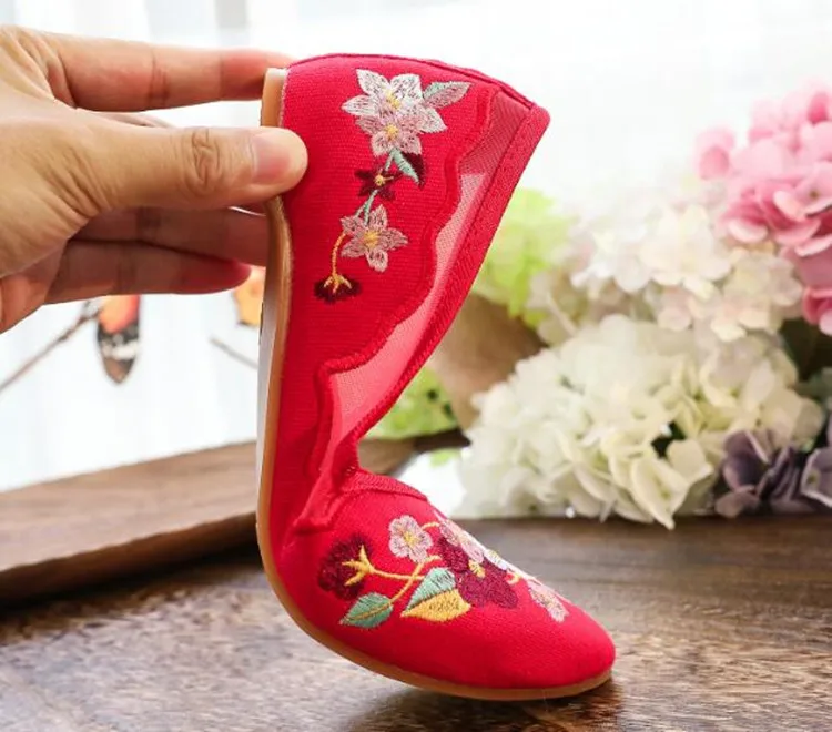 Материал верха: холст + Цветочная вышивка Материал подкладки: хлопковая ткань Стелька: лен Подошва: TPR Цвет: черный/красный/белый
