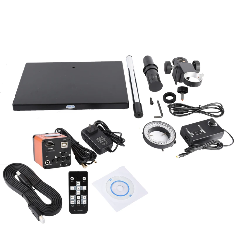 Упаковочный лист: 1. Зум-объектив 0.7X-4.5X * 1 2. Стойка для фокусировки * 1 3. Стойка стойки и опорная пластина * 1 4. Светодиодный кольцевой светильник * 1 5, 16 миллионов пикселей микроскоп камера * 1 6. HDMI линия высокой четкости * 1 7. USB линия передачи данных * 1 8. Адаптер питания камеры * 1 9. CD-накопитель * 1 10. Пульт дистанционного управления * 1 Примечание: | |