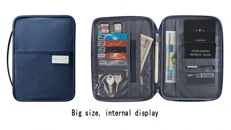 Материал верха: изготовлен из прочной ткани Оксфорд rip-stop, водонепроницаемый материал, прочный цинковый сплав гладкая молния сохраняют ваши туристические аксессуары для безопасности. Внутренняя часть обеспечивает безопасное пространство для хранения и предотвращает появление царапин, гладкий и легкий. Может вмещать паспорт, кредитную карту, ручку, билеты, монеты, ключи, деньги, телефонные документы и т. д. Спецификация: Размер маленького паспорта: 21,5x12,5x2 см/8,4x4,9x0,7 дюйма Размер большого паспорта: 25,5x18,5x2 см/10x7,2x0,7 дюйма Цвет: черный, серый, темно-синий, синий, розовый Вес: 160 г маленький, 200 г Большой Из-за ручного измерения возможна разница в 0,5-1 см. Прежде чем купить эту товарную позицию, просим тщательно свериться с таблицей размеров. 1 дюйм = 2,54 см Обратите внимание что небольшая разница в цвете считается приемлемой. Это может быть связано с положением источника света и с настройками экрана. Что вы получаете: 1 * сумка для органайзера для паспорта