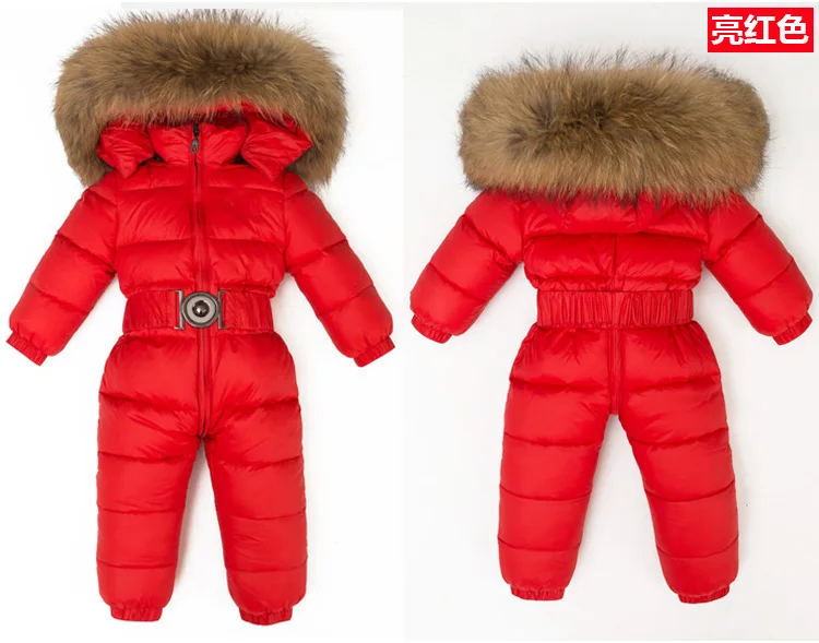 Утепленный комбинезон с натуральным мехом для маленьких девочек и мальчиков, 90 белый утиный пух, для русской зимы-30 градусов