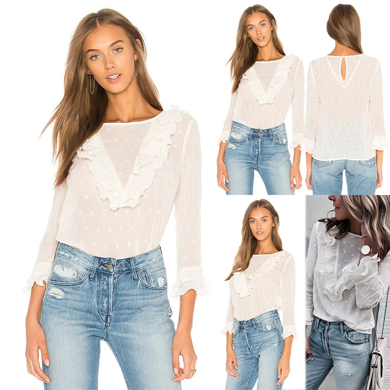 Повседневное осень длинные лепесток рукав Для женщин Блузы и рубашки женские