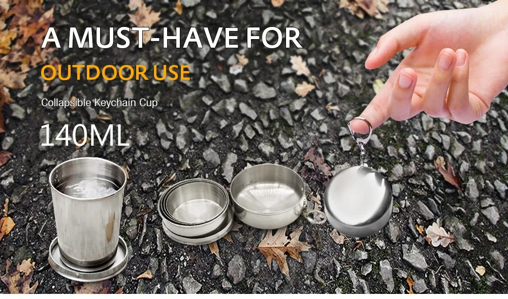 Material: stainless steel, safe and healthy;Perfect cups for water, wine, tea and so on ;Best helper for drinking if you go out or have a trip;The cup is comprised of the actual cup and the cup lid. The lid of the cup can also be used as a somewhat smaller cup if you desire. The cup itself is comprised of the base and two extendable sleeves