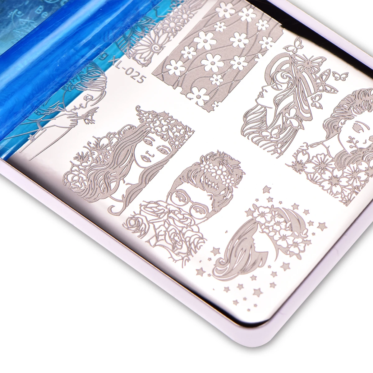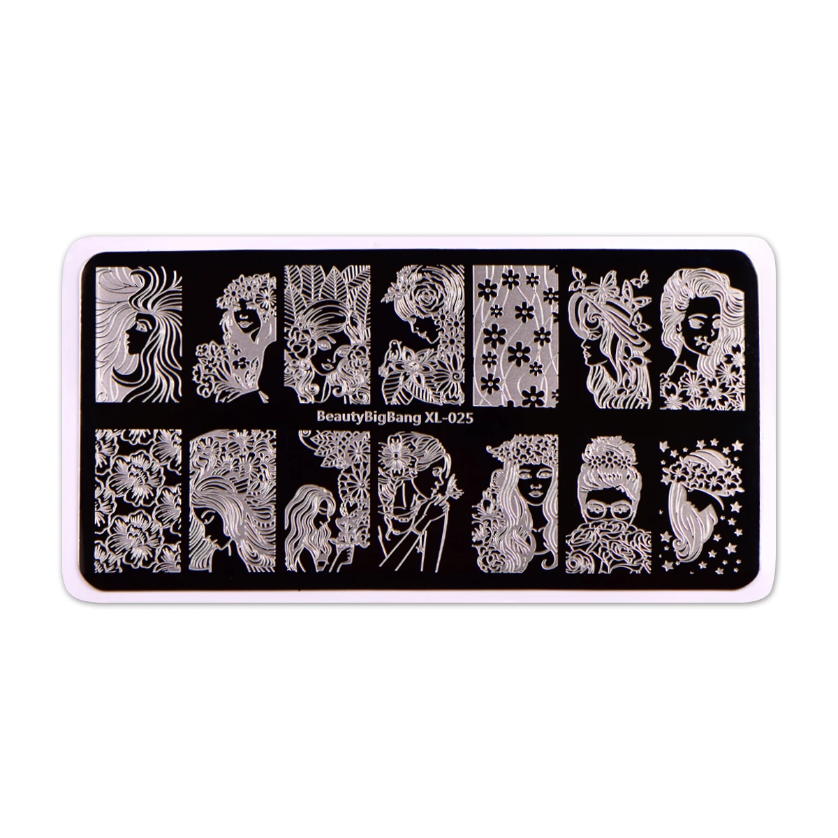 BeautyBigBang штамповочная пластина для дизайна ногтей красивая девушка цветочный Рисунок штамп шаблон для ногтей штамповка пластин BBB 025