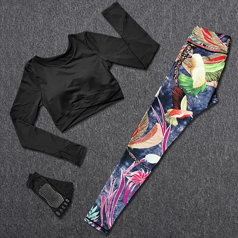 Спортивная женская обувь для занятия йогой спортивный костюм для занятий фитнесом, спортивный костюм для детей Топ и штаны на открытом воздухе бег спортивную одежду костюмы груди площадку колготки Товары включают: Носки для йоги * 1 Спортивная футболка (с накладкой на грудь) * 1 Стрейчевые брюки * 1