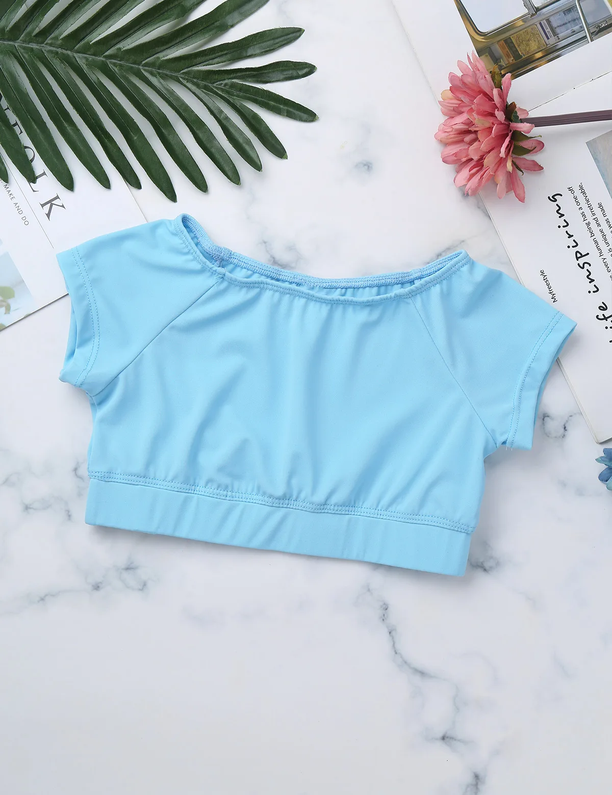 | Номер бирки | Рекомендуемый размер для детей | Грудь | Длина топа | Нижняя часть талии | Длина нижней части |