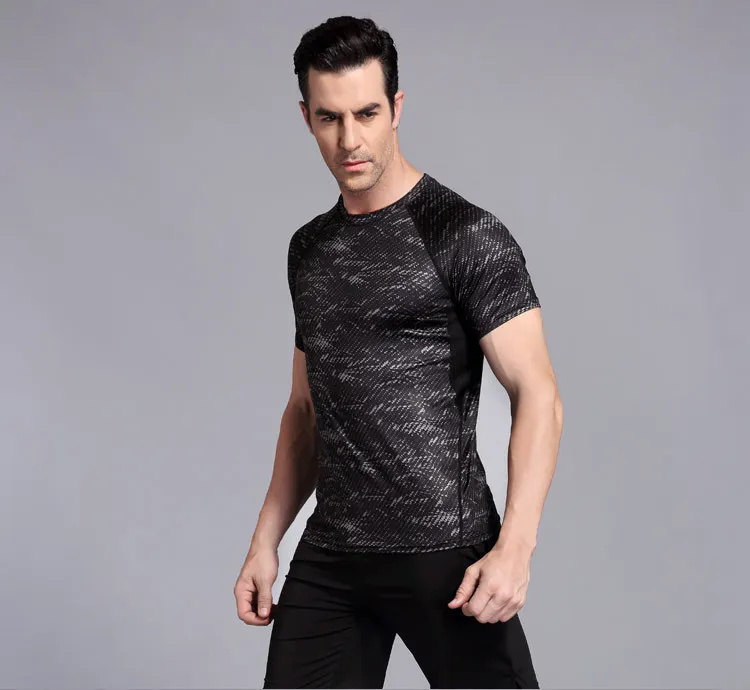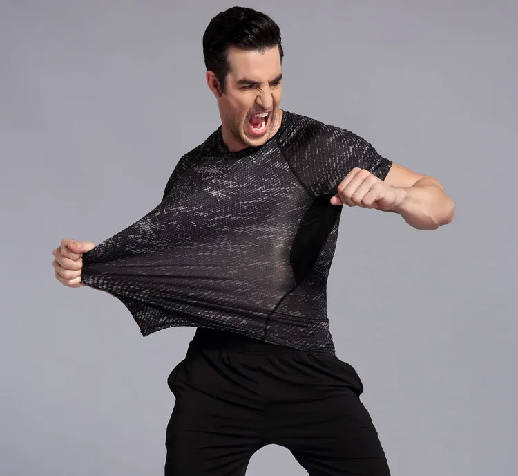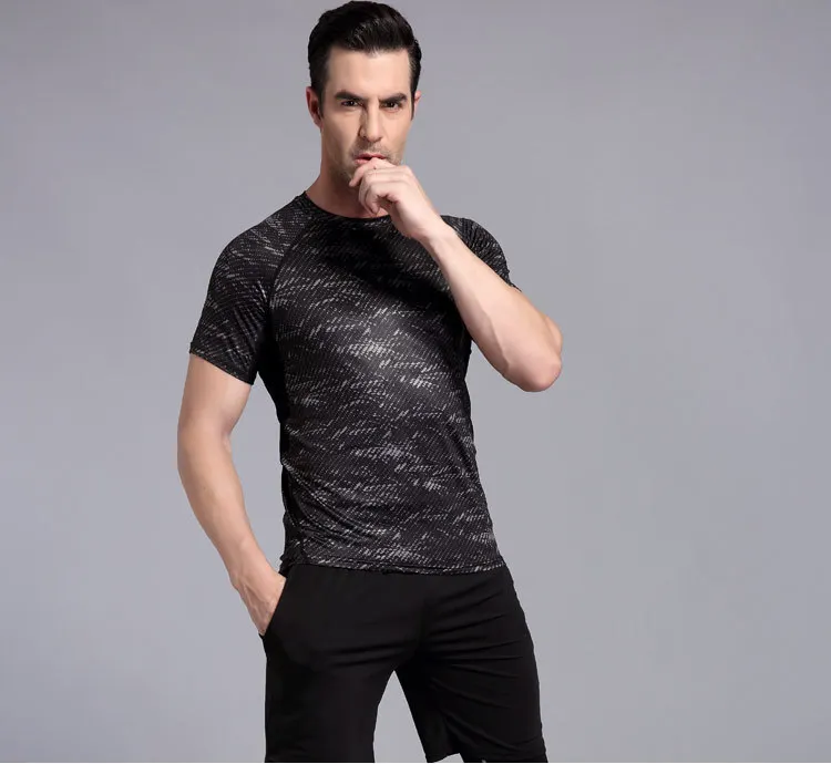 R & S Новая мужская Спортивная футболка эластичный Топ для бодибилдинга спортивная футболка с коротким рукавом быстросохнущая одежда для фитнеса Мужская футболка для бега