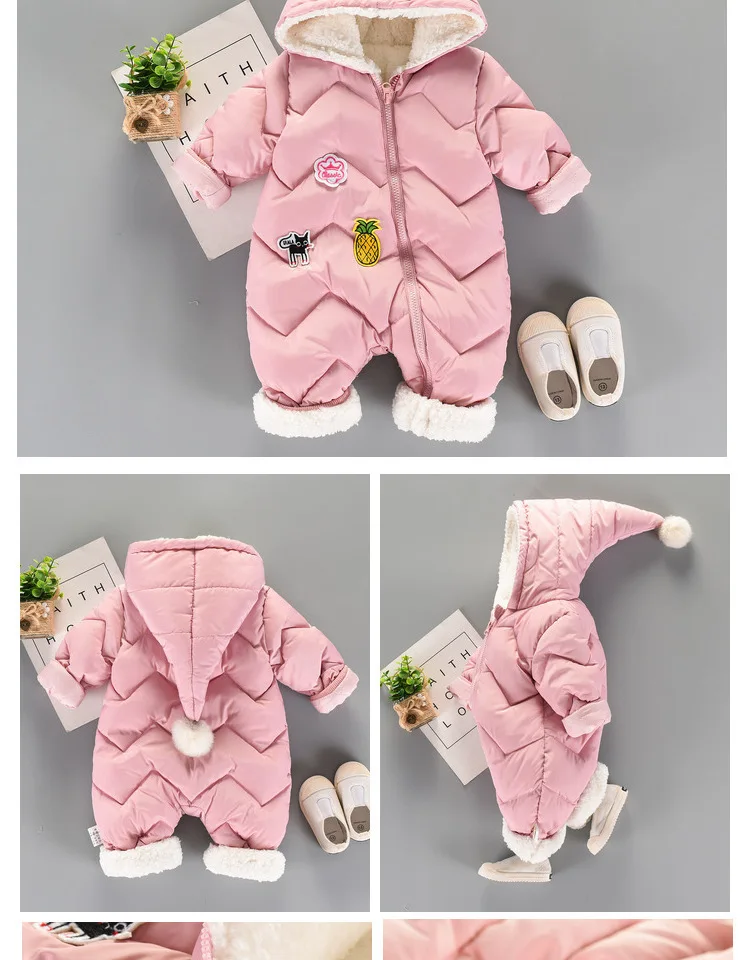 Высококачественная одежда для новорожденных девочек детский хлопковый утепленный комбинезон с капюшоном, зимний комбинезон для малышей, костюмы для детей от 0 до 24 месяцев