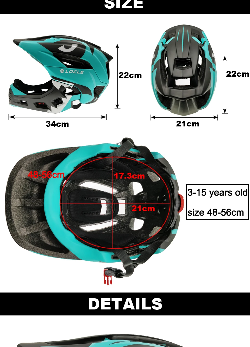Информация о продуктеНаименование товара: детский шлем двойного назначенияМатериал: EPS + PCВес нетто: около 440 гВентиляционные отверстия: 13Цвета: красный/желтый/синий/небесно-голубой/розовыйПодходит для: MTB велосипеда/шоссейного велосипеда/горного велосипеда/катания на роликах/катания на лыжахРазмер: один размер 48-56 смРекомендуемый возраст: около 3-15 летОсобенности:1. Цельный процесс формования, сильная ударопрочность.2. Съемная подкладка и 13 больших вентиляционных отверстий для лучшего поглощения ударов и поглощения пота, что делает езду более удобной.3. Длинные поля предназначены для интеграции с солнцем, с лучшей защитой.4. Свободное преобразование между полушлемом и полнолицевым шлемом, с фиксированной пряжкой на подбородке и задней головкой.4 Слои защиты1: внешний корпус ПК, защита от столкновений и ударопрочность.2: промежуточный EPS, амортизационный буфер.3: внутренняя подкладка, толстая и мягкая, амортизирующая и впитывающая пот.4: под дизайном, укрепляет пластиковую подложку, защищает подбородок.