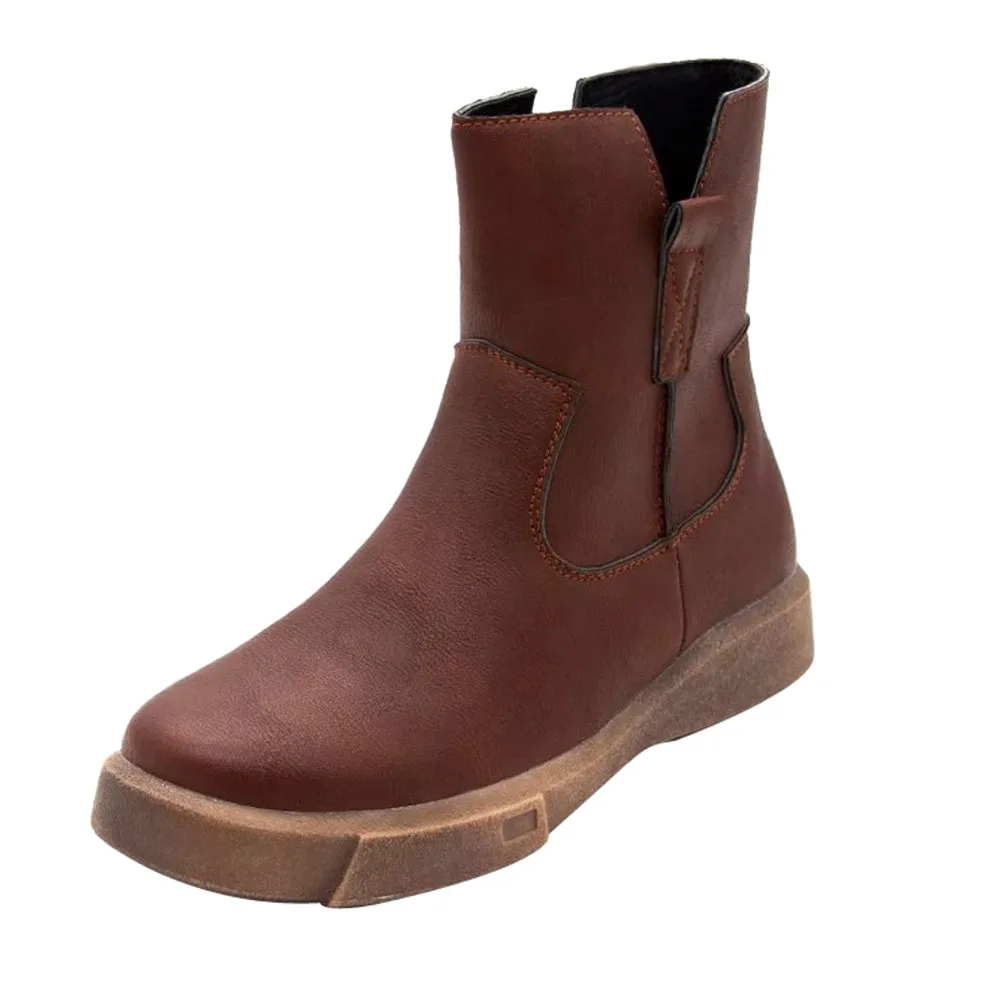 Женские кожаные ботинки на плоской подошве; Низкие ботинки-трубы на молнии средней высоты; повседневная обувь; Ботинки Martin