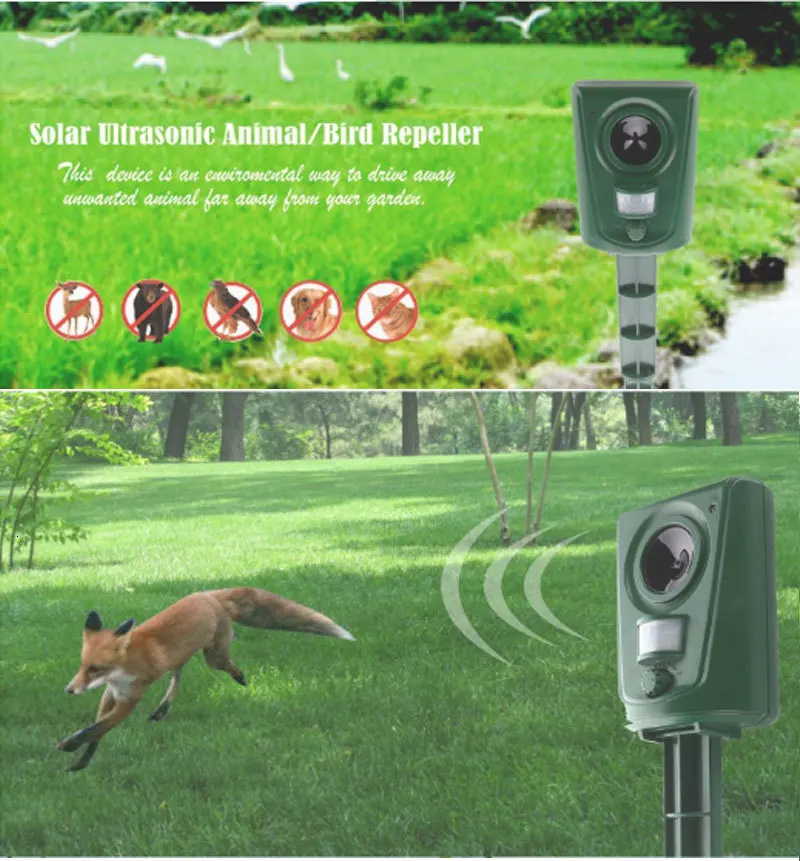 2.Animal repeller blasts a range of powerful ultrasonic sound, audible sound to scare away a wide variety of outdoor pests.