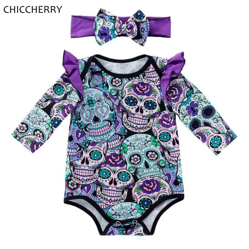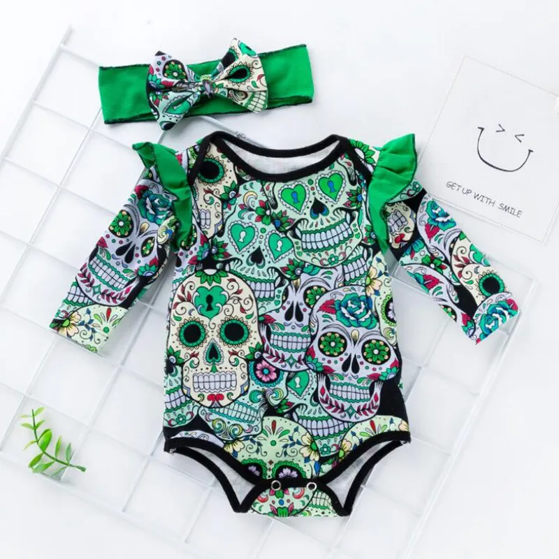 Мексиканский костюм на Хэллоуин с черепом для маленьких девочек; Bebe; Боди; Повязка на голову; Комплекты с юбкой-пачкой для новорожденных; Детская одежда; Одежда для младенцев; Bebek Giyim