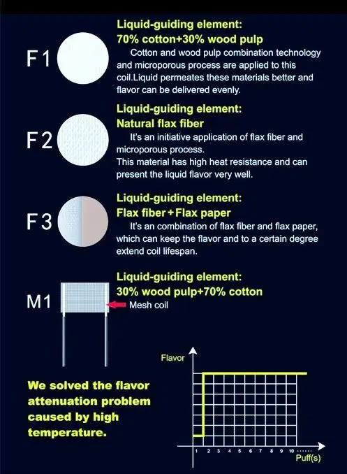 1. HorizonTech Falcon F1 Coil: 30% wood pulp + 70% cotton, 0.2ohm, 80±10W 2. HorizonTech Falcon F2 Coil: Natural flax fiber, 0.2ohm, 80±10W 3. HorizonTech Falcon F3 Coil: Flax fiber + flax paper, 0.2ohm, 70±10W 4. HorizonTech Falcon M1 Coil: Mesh Coil, 30% wood pulp + 70% cotton, 0.15±0.03ohm, 70±10W 5. HorizonTech Falcon M1+(M1 Plus) Coil: Mesh Coil, bamboo fiber, 0.16ohm, 75W 6. Fit for: HorizonTech Falcon/King Sub-Ohm Tank 3pcs in one pack, this price is for 1pack.