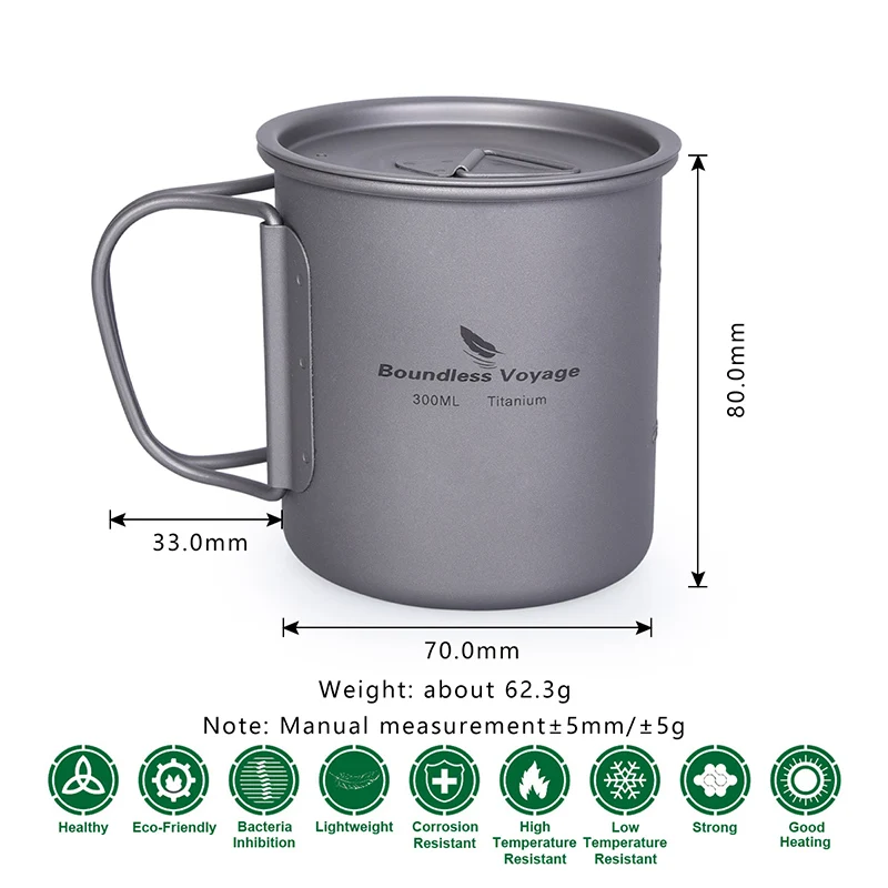 Модель: Ti15141A Материал: 99.8% титана Размер: Φ60 *(H)72 мм, толщина: 0,4 мм Вес: около 55 г Емкость: около 200 мл Место происхождения: Китай