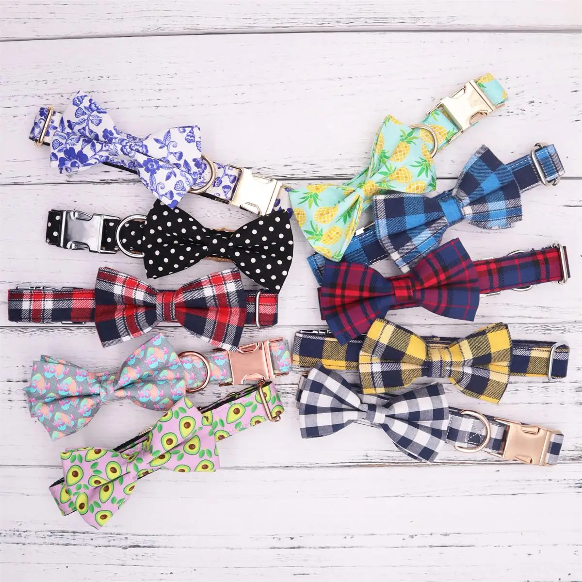Индиго синий цветочный узор ошейник для собаки с галстуком-бабочкой синий и белый фарфор Регулируемый хлопок собака и кошка подарки