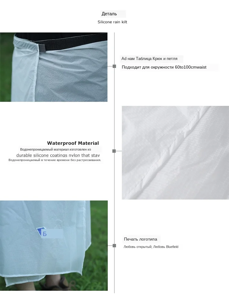 Дождевой килт можно быстро и легко натянуть на сапоги и одежду, чтобы ваши ноги и спина были сухими. Он не сковывает движения, и вы остаетесь в тепле и сухости вместо того, чтобы жарко и потеть под водонепроницаемыми брюками.