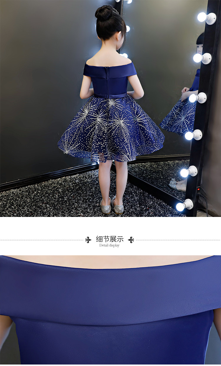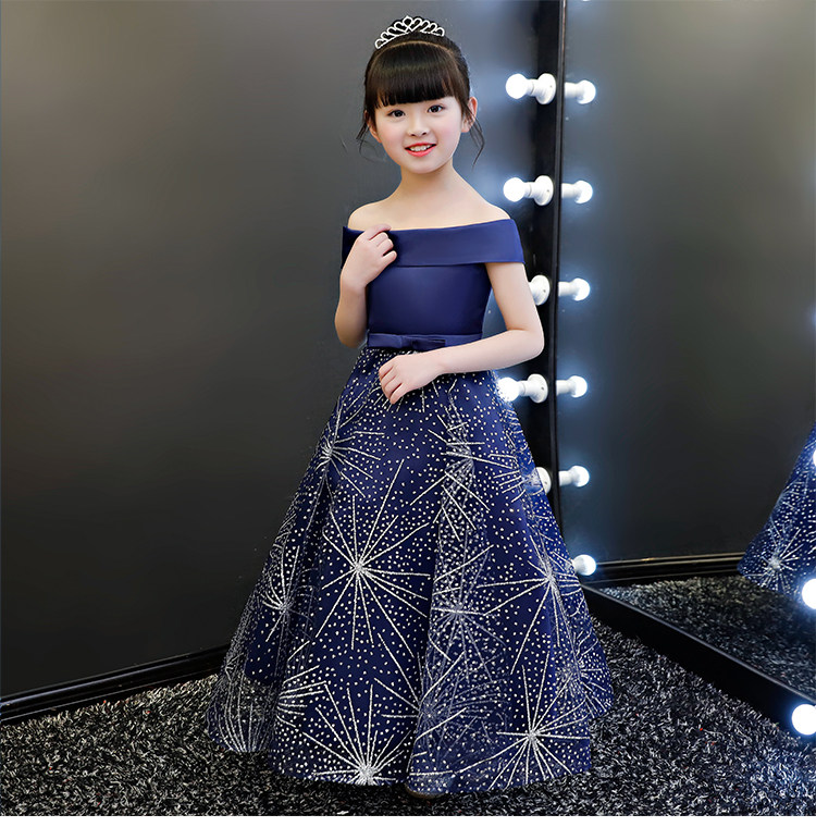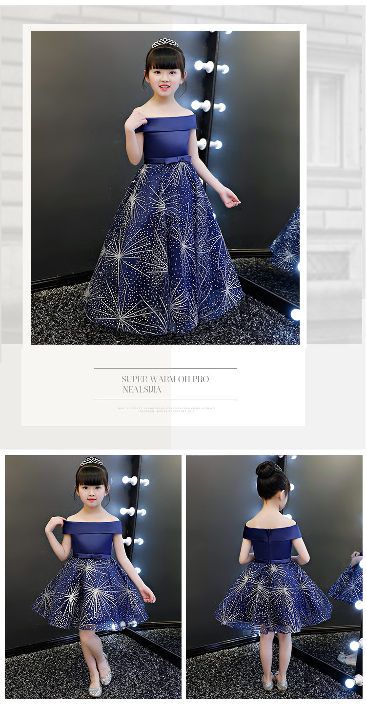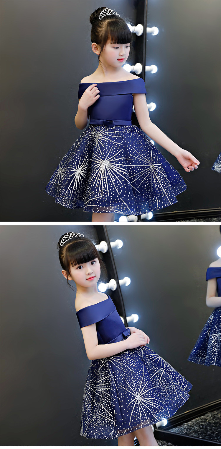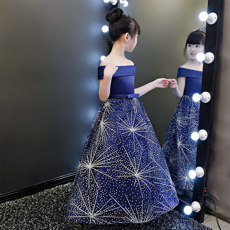 Роскошное платье с цветочным узором для девочек Бальные платья темно-синего цвета с блестящими блестками, платье-пачка принцессы нарядное свадебное платье для маленьких девочек с открытыми плечами