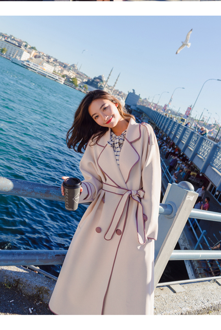 Мода 2020 длинный средневековый Тренч шерстяное пальто женское черное с