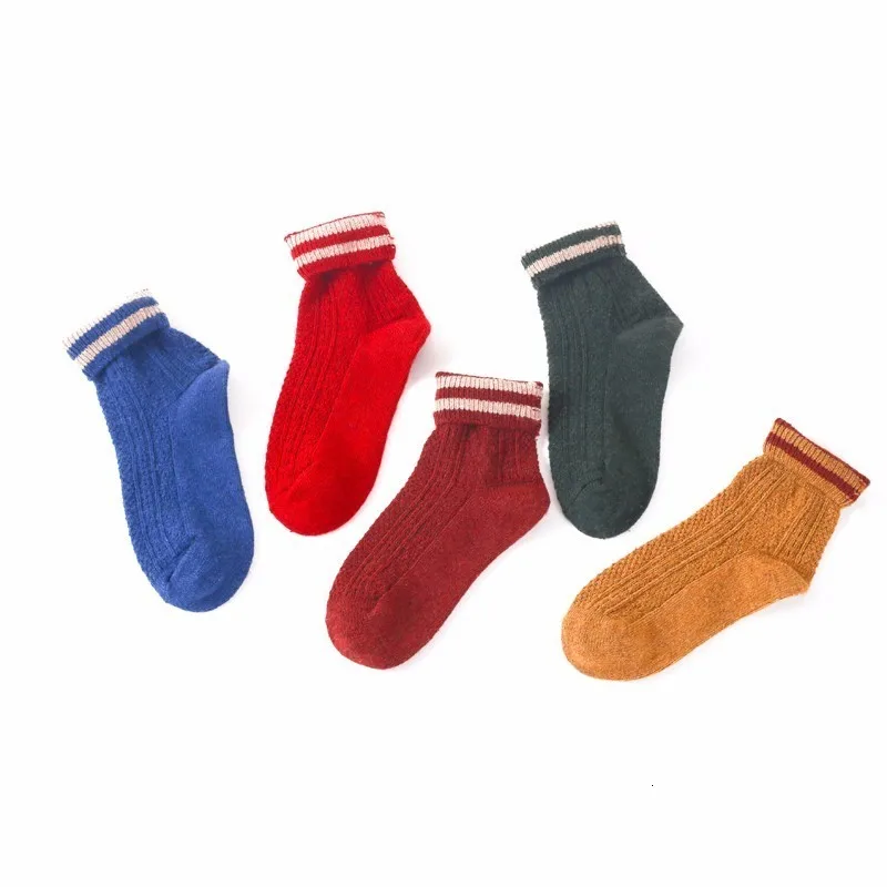 New Fashion 5 Pair High Quality American Style Street Hip-pop Stripe Thick Wool Socks Women Summer Slogan Female Cotton Socks
