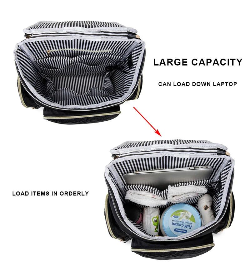 [Вместительный рюкзак] Большой размер с 16 независимыми карманами для хранения, включая 2 изолированных кармана для сохранения тепла или холода бутылки, 2 боковых кармана на молнии, 1 Противоугонный карман для личных кошельков, мобильных телефонов или других ценных вещей, 1 мягкий карман для ноутбука, 1 шт. брелок для ключей позволяет легко найти ключи, Все эти дизайны сделают вашу жизнь проще. [Высококачественный материал] Использование высококачественной водонепроницаемой нейлоновой ткани с модным дизайном вышивки; Гладкая молния, роскошная застежка-молния, плечевые ремни утолщены подушкой, это делает путешествия мамы более комфортными и расслабленными. [USB-интерфейс и обогреватель] Конструкция USB-порта для зарядки удобнее для вас заряжать телефон (встроенный шнур питания, необходимо подключить кабель передачи данных к power bank для зарядки телефона); помимо зарядки телефона, он также может подключить грелку, чтобы сохранить тепло для молока (Используйте блок питания для зарядки, чтобы избежать повреждения обогревателя) [Отпустите руки] Вы можете использовать ремни коляски, которые идут в комплекте с рюкзаком, чтобы подключить рюкзак для детских подгузников к коляске, или когда вы путешествуете с тележкой-чехол, можно положить рюкзак на чехол-тележку, так как сумка идет в комплекте с ремешком для тележки-чехол, освободить руки, наслаждаться досугом с ребенком. Его можно использовать как рюкзак, сумку для переноски, или сумку-тоут; Этот рюкзак появляется во многих случаях для заботы о малышах, таких как шоппинг, путешествия, прогулки, отпуск, пикник, командировка, И т. д.