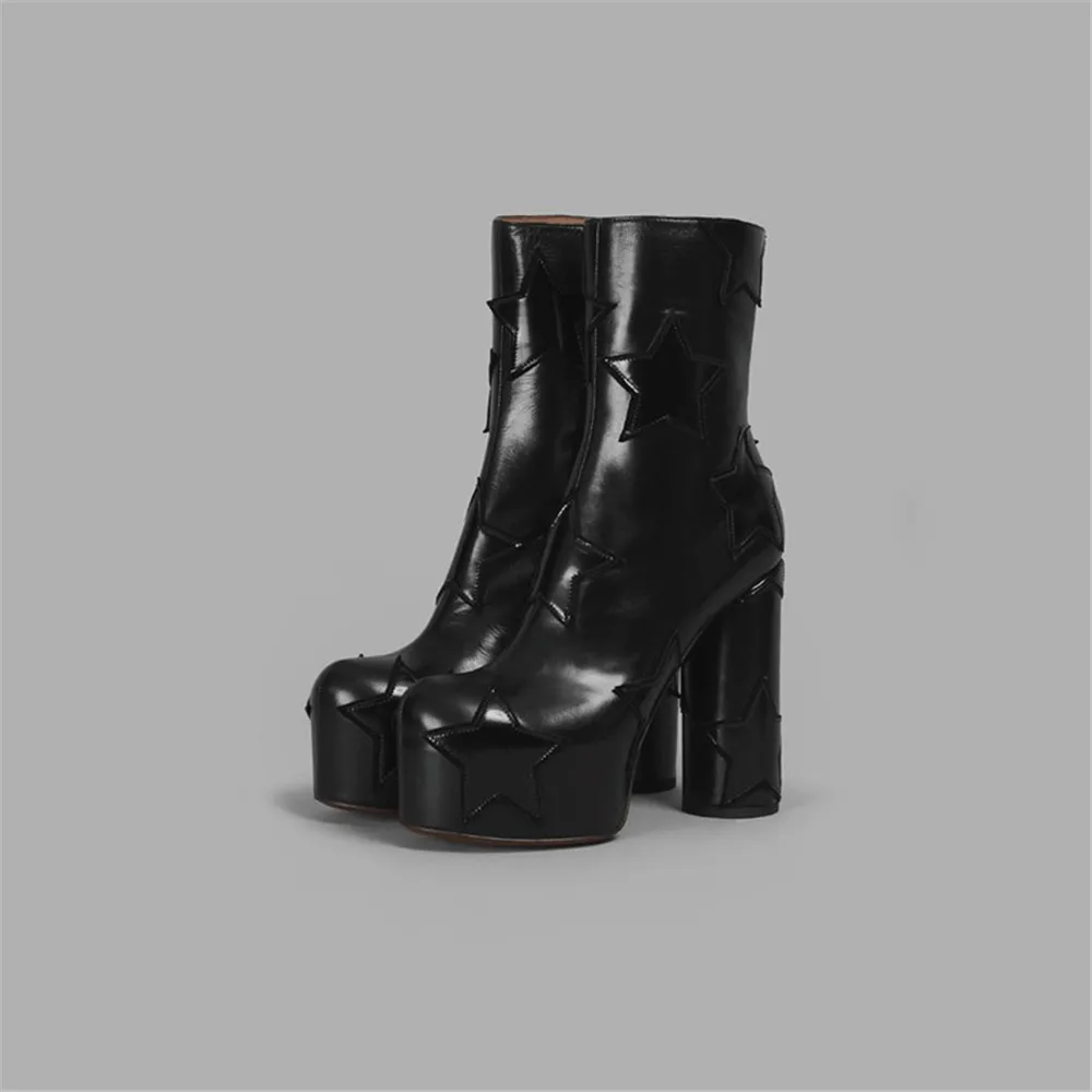 BuonoScarpe/Новое поступление; Женские сапоги со звездами на платформе; Модная брендовая дизайнерская обувь из натуральной кожи; Лоскутная обувь на высоком каблуке; Botas Mujer