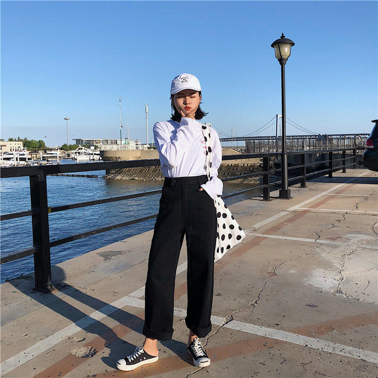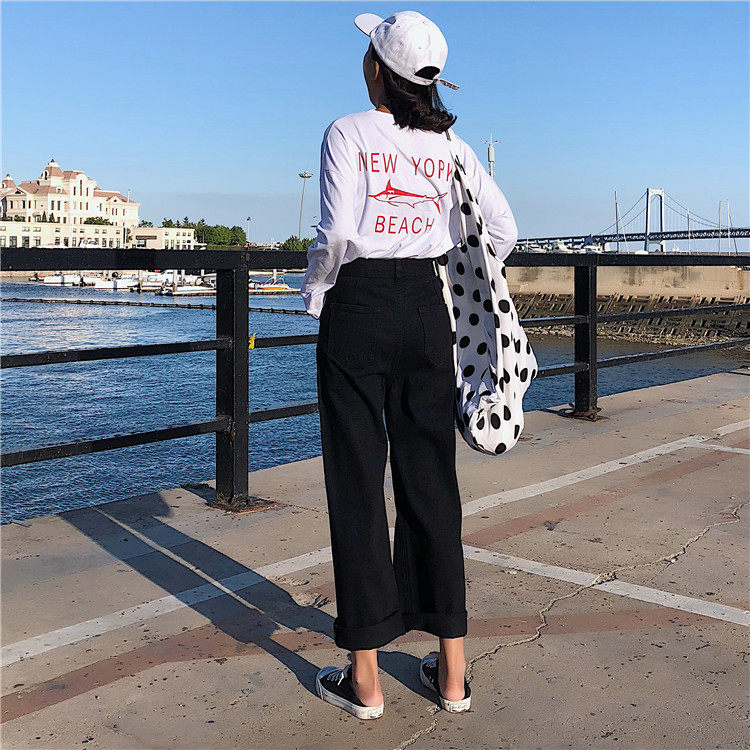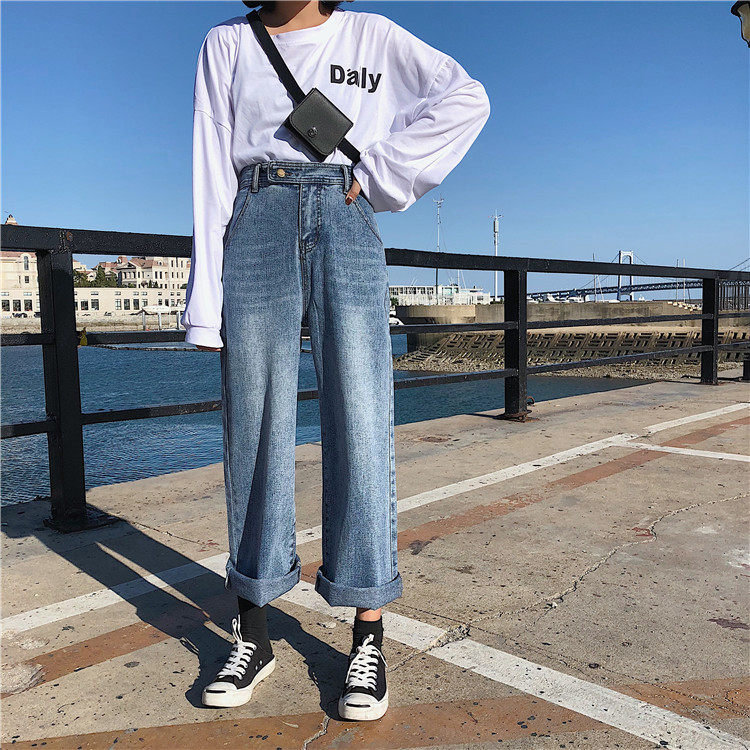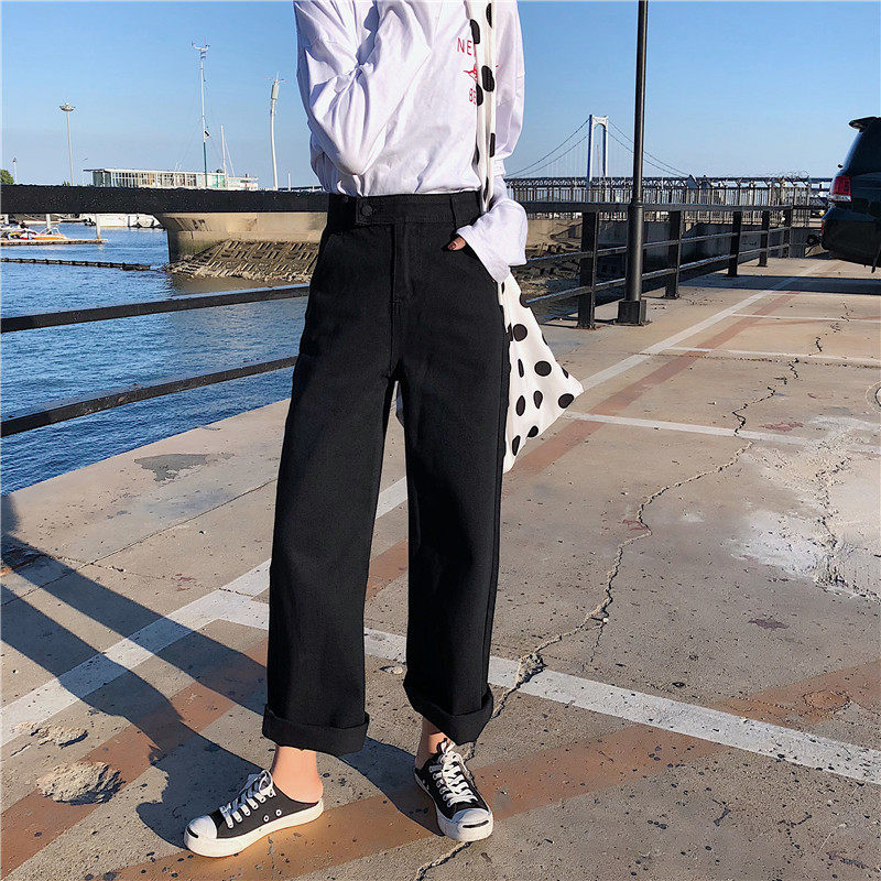 S-XL 2 цвета 2018 Осень Новый корейский стиль джинсы с высокой талией винтажные Широкие джинсовые брюки женские джинсы