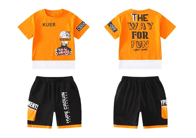 Комплект детской одежды в стиле хип-хоп из 2 предметов; Летняя футболка с короткими рукавами для мальчиков и девочек; Шорты; Хлопковый спортивный костюм; Vetement Garcon