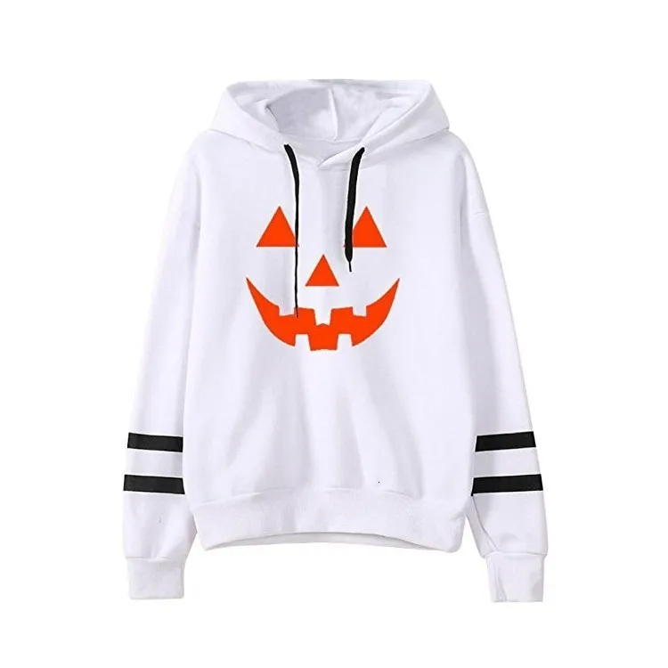 Halloween Pumpkin Printing hoodie Autumn Stripe Long sleeve harajuku Drawstring Sweatshirt Sudaderas Mujer Korean Style