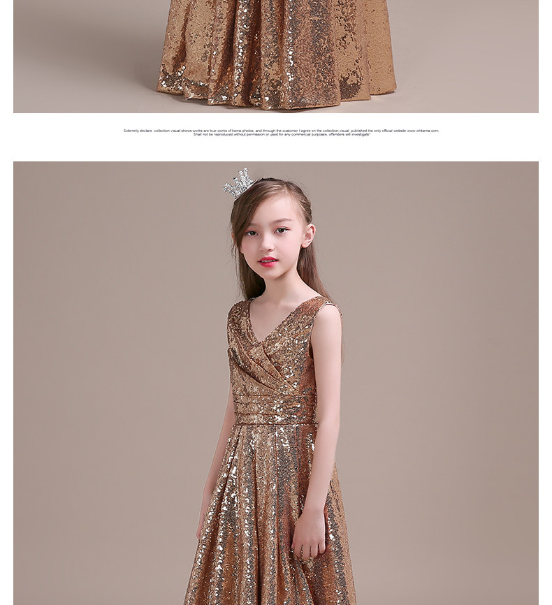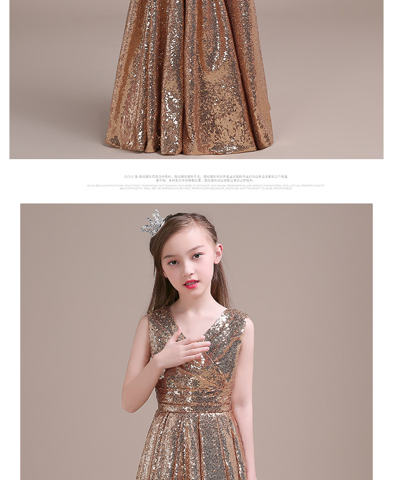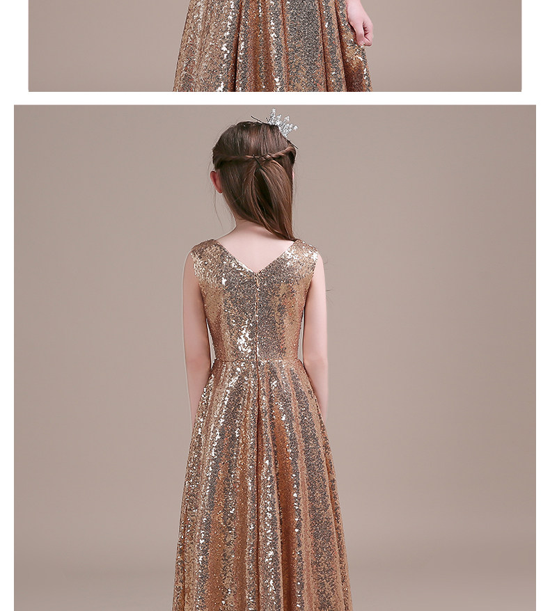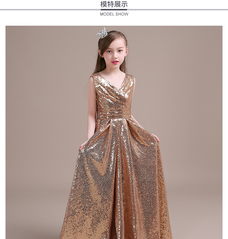Детское вечернее длинное платье золотистого цвета с блестками; Одежда для выступлений; Бальные платья; Пышное платье для маленьких девочек; Костюмы на Хэллоуин для малышей